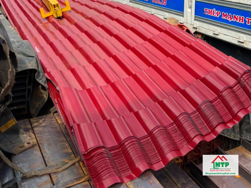 - Đặc điểm: Tôn Hoa Sen giả ngói trên nền tôn dày 4.5 dem tạo sóng ngói cứng cáp, ít biến dạng, trọng lượng nhẹ hơn ngói truyền thống.