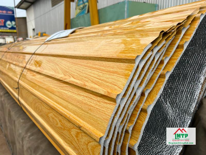 - Đặc điểm: Bề mặt vân gỗ in trên nền tôn dày 4.5 dem, vừa bền vừa mang tính trang trí cao.