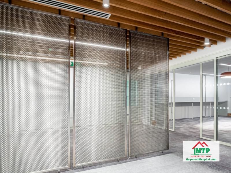 Thép tấm đục lỗ sơn tĩnh điện phù hợp với các công trình dân dụng và thương mại nhờ bề mặt phủ sơn bền màu, tăng khả năng chống ăn mòn và dễ phối màu theo thiết kế kiến trúc. Loại này thường dùng làm vách ngăn, trần, mặt dựng trang trí, vừa đảm bảo độ bền vừa tạo tính thẩm mỹ với chi phí hợp lý.