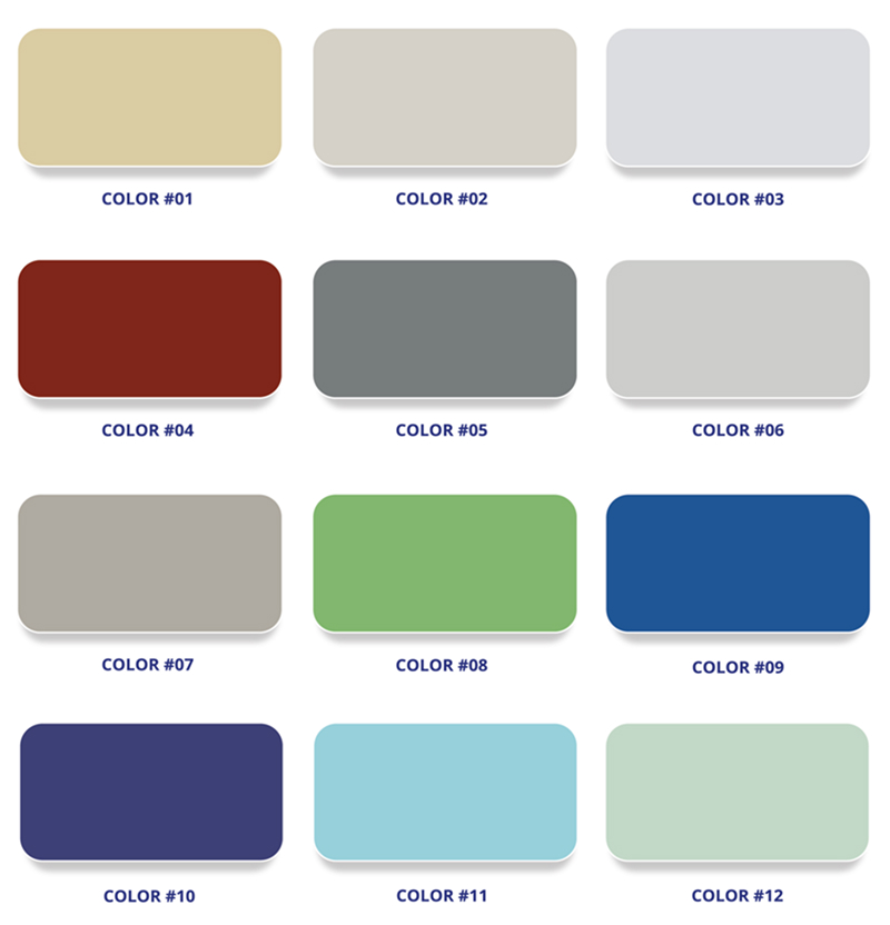 - Hệ sơn PE 4 lớp, độ dày 20-25 micron cho độ bám dính cao, màu sắc ổn định theo thời gian, hạn chế trầy xước.